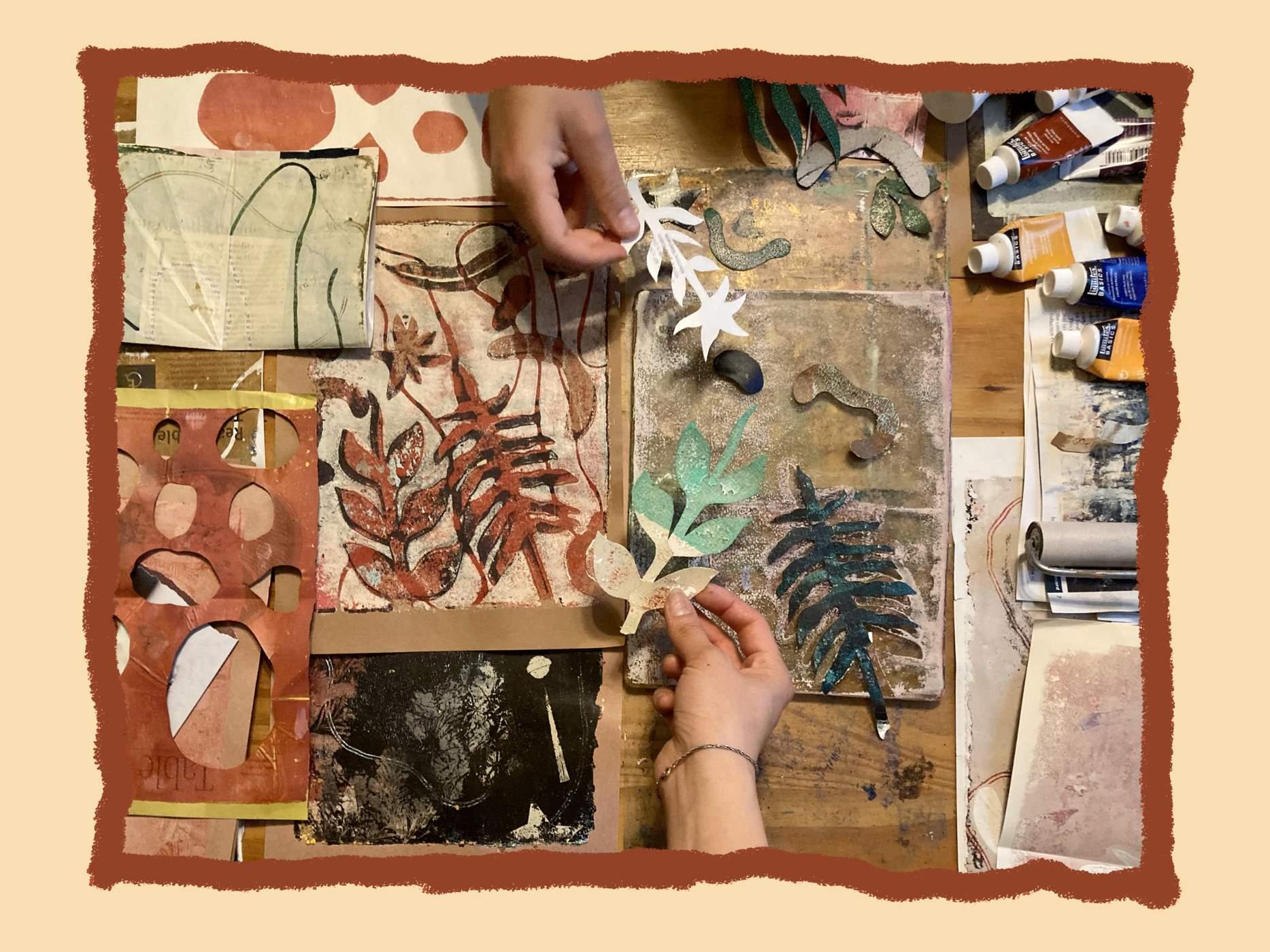 Immerse yourself in playful printmaking in this hands-on mixed media Gelli printing class. Experiment with handmade stencils, explore textures, try image transfers, and incorporate collage techniques to create beautifully layered monoprints. This workshop is perfect for both beginners and experienced artists who enjoy intuitive, fast, and rewarding creative processes. You’ll leave with a vibrant collection of unique prints and your very own handmade print journal.