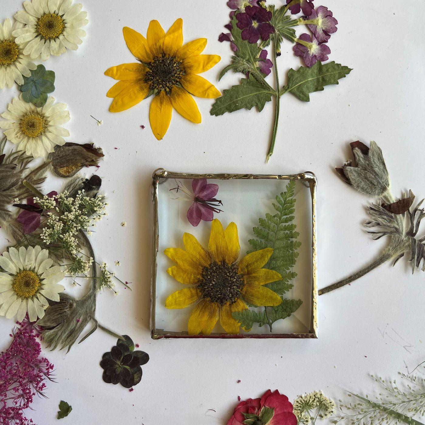 Bring the outdoors in with a nature-inspired glass artwork! Arrange pressed flowers and greenery into a beautiful framed piece, sealed between glass.